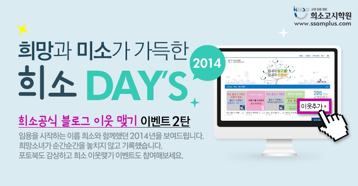 Èñ¼Ò °ø½Äºí·Î±× ÀÌ¿ô¸Î±â À̺¥Æ® Á¦ 2ź "Èñ¸Á°ú ¹Ì¼Ò°¡ °¡µæÇÑ Èñ¼Ò DAY'S"°¡ ¿©·¯ºÐÀ» ã¾Æ°©´Ï´Ù. ÀÚ¼¼ÇÑ ³»¿ëÀº ¾Æ·¡ ¸µÅ©¸¦ È®ÀÎÇϼ¼¿ä