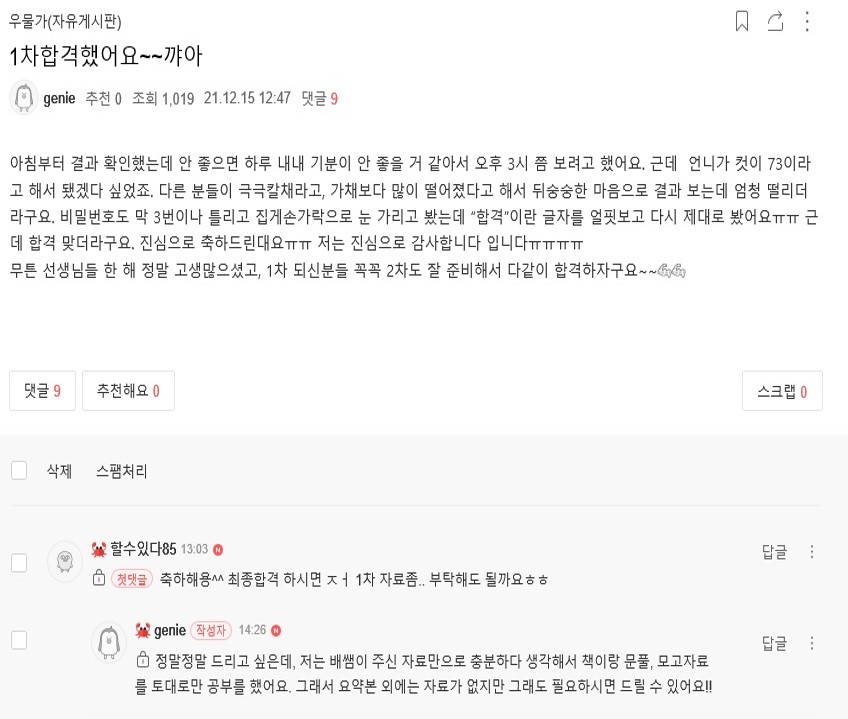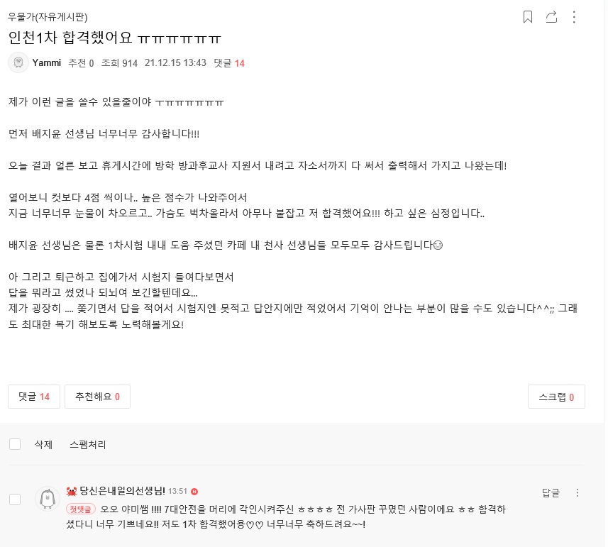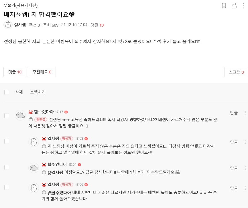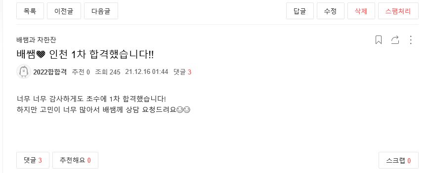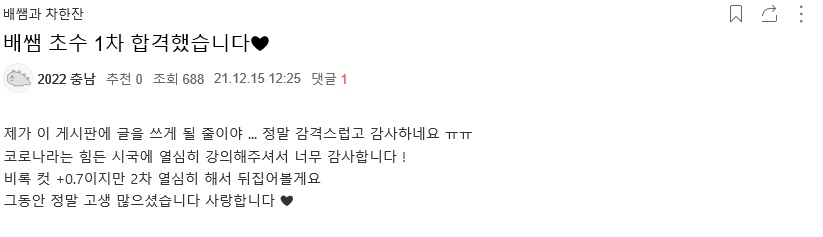 ÇöÀç ¹èÁöÀ± ¼±»ý´Ô Ä«Æä¸¦ ÅëÇØ ½Ç½Ã°£À¸·Î ¿Ã¶ó¿À´Â 1Â÷ ÇÕ°Ý ¼Ò½Ä, 2022Çг⵵ 1Â÷ ÇÕ°ÝÀÚ ÇöȲÀ» Áö±Ý ¹Ù·Î °ø°³ÇÕ´Ï´Ù!