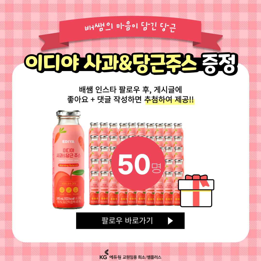 💟 ¹èÁöÀ± ¼±»ý´Ô ÀνºÅ¸±×·¥ 💟 - ID : baessam_kids_t - ÀνºÅ¸±×·¥ ¹Ù·Î°¡±â ¢º 💟 ÆÈ·Î¿ì À̺¥Æ® Âü¿© ¹æ¹ý 💟 1. ¹èÁöÀ±½Ü ÀνºÅ¸ ±¸°æÇϰí, ÆÈ·Î¿ì Ŭ¸¯!! 2. À̺¥Æ® °Ô½Ã±Û ³»¿ë È®ÀÎÇϰí ÁÁ¾Æ¿ä ´©¸£±â!! 3. À̺¥Æ® Âü¿© ´ñ±Û ³²±â°í »óǰ ¹Þ±â!! - Ä£±¸ ű×ÇÏ¸é ´ç÷ È®·ã UP!UP! - Èñ¼Ò ¾ÆÀ̵ð Ãß°¡Çϸé ÃֽŰæÇâ¿¡ ¸ÂÃá ¿¬µµº° ±âÃâ¹®Á¦ º¯Çü ¸ðÀǰí»ç 50% ÇÒÀÎ!!