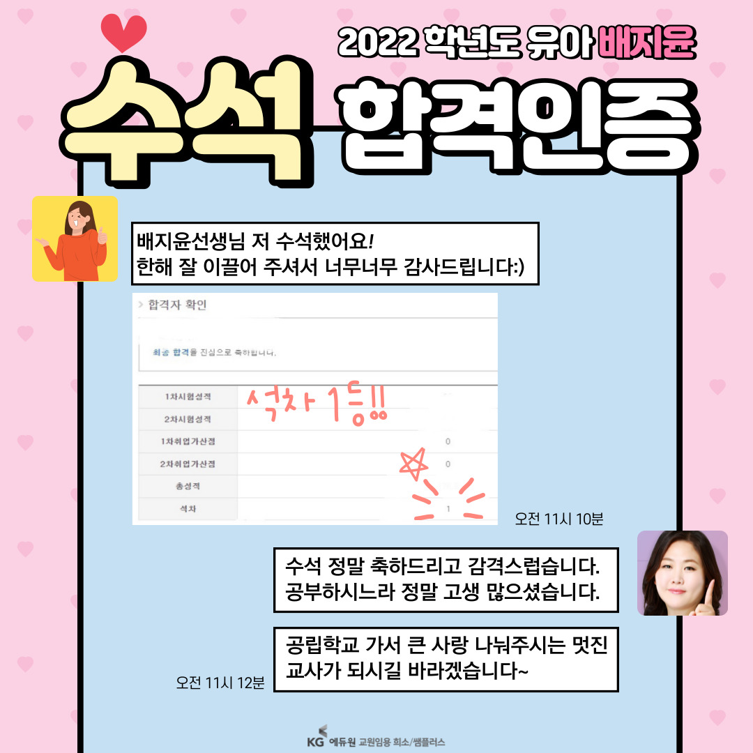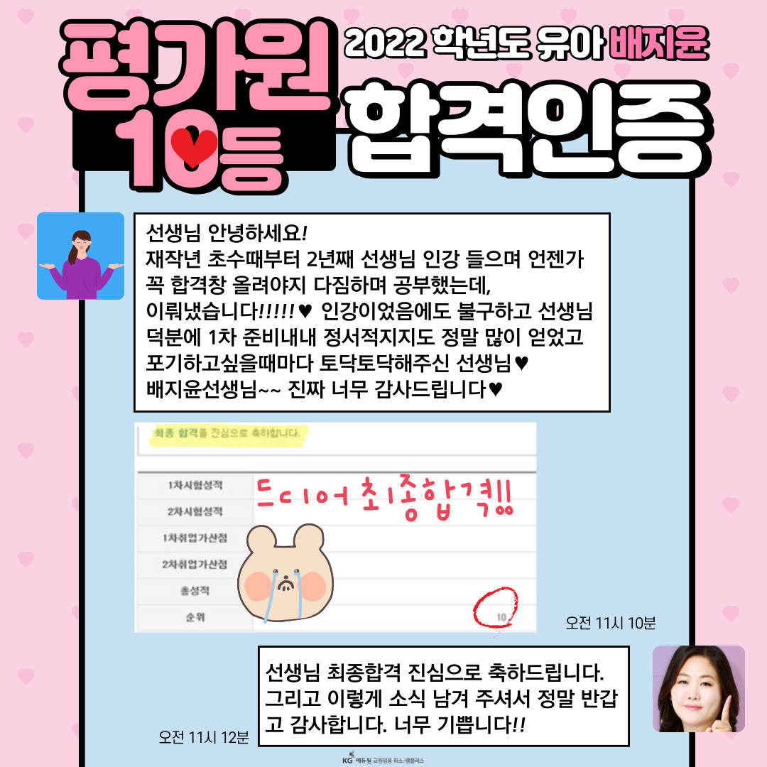 2022.02.04¿¡ ¹ßÇ¥µÈ [2022Çг⵵ À¯¾ÆÀÓ¿ë ÃÖÁ¾ÇÕ°ÝÀÚ] ¹ßÇ¥ ÀÌÈÄ, ¹èÁöÀ± ¼±»ý´Ô Ä«Æä¸¦ ÅëÇØ ½Ç½Ã°£À¸·Î ¾÷µ¥ÀÌÆ®µÇ´Â ¼ö ¸¹Àº ÇÕ°ÝÀÎÁõ!! 🏆 "Æò°¡¿ø ÃʼöµÚÁý±â ÇÕ°ÝÇß¾î¿ä ¤Ð¤Ð¤Ð" 🏆 "¹è½Ü ´öºÐ¿¡ ÀçÇлý Ãʼö ÇÕ°ÝÇß¾î¿ä!" 🏆 "°æ±â Ãʼö ÇÕ°ÝÇß¾î¿ä!!!❤️🔥" 🏆 "ÀϺ´Çà 3µîÀ¸·Î ÃÖÇÕÇß¾î¿ä¤Ð¤Ð💖" 🏆 "ÀçÇлý Ãʼö ÃÖÁ¾ÇÕ°ÝÇß¾î¿ä❤️💐" °¢ÀÚÀÇ À§Ä¡¿¡¼ ÃÖ¼±À» ´ÙÇÑ, ÇÕ°Ý»ýºÐµé Áø½ÉÀ¸·Î ÃàÇϵ帳´Ï´Ù~!!