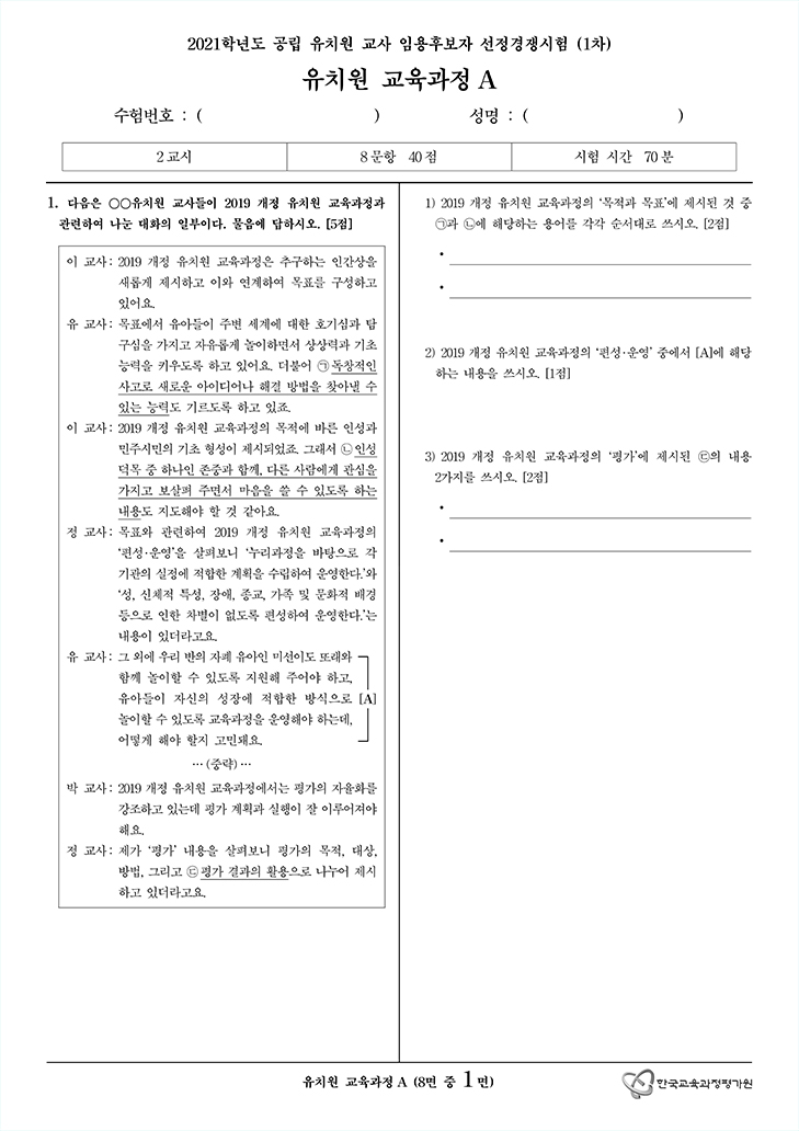 2019°³Á¤ À¯Ä¡¿ø ±³À°°úÁ¤ÀÇ ¸ñÀû°ú ¸ñÇ¥, Æí¼º ¿î¿µ, Æò°¡¿¡ °ü·ÃµÈ ³»¿ë