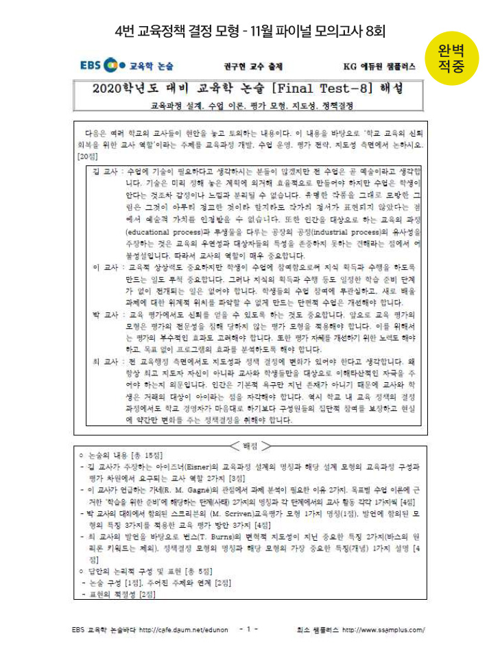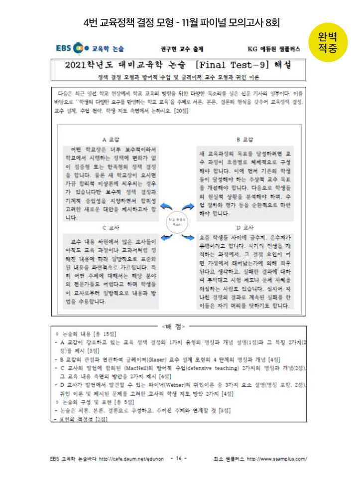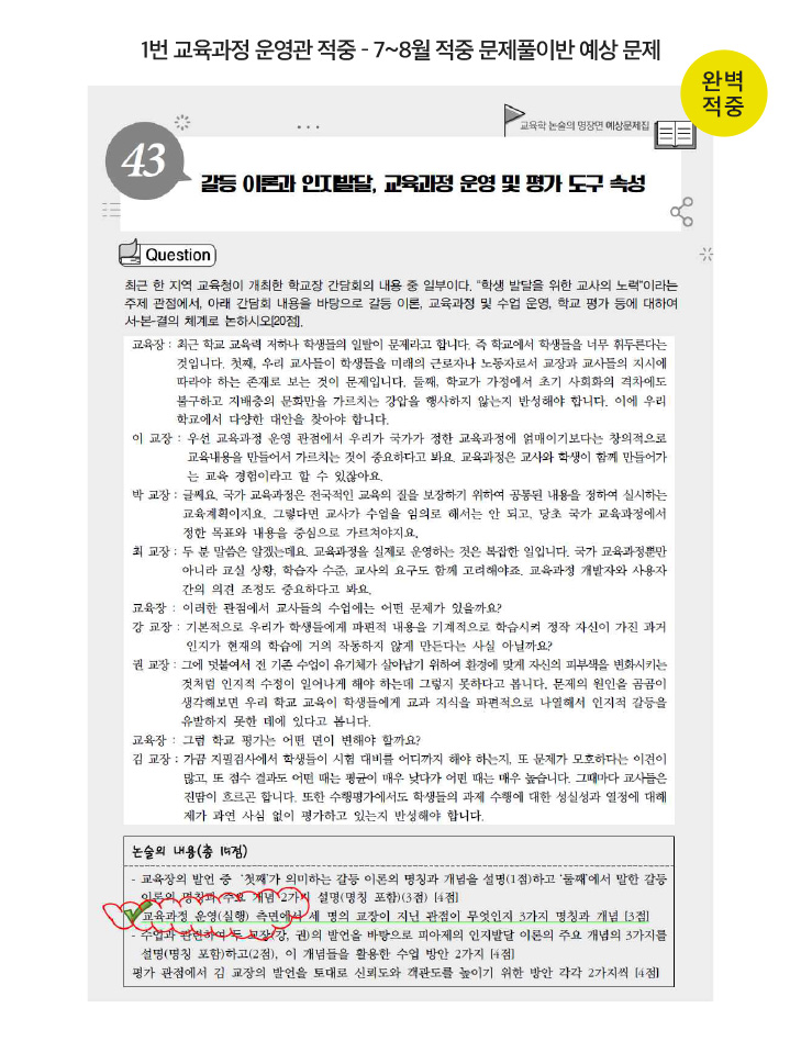 ±Ç±¸Çö ¼±»ý´ÔÀÇ ±³À°ÇÐ ³í¼úÀÇ ¸íÀå¸é °ÀÇ ¿¹»ó¹®Á¦Áý 43¹ø ¹®Ç× 100% ÀûÁßÀÔ´Ï´Ù! ù ¹øÂ° ¹®Á¦ÀÇ ±³À°°úÁ¤ ¿î¿µ °üÁ¡¿¡ ´ëÇØ ÃâÁ¦ÇϽй®Á¦ÀÔ´Ï´Ù. ÀÌ·Ð ¼ö¾÷ ½Ã°£¿¡µµ ±³À°°úÁ¤ ¿î¿µ °üÁ¡À» ½ºÅ³º¤ÀÇ Çб³ Á᫐ ±³À°°úÁ¤ ¼³°è¿Í °ü·ÃÇÏ¿© Ç×»ó °Á¶Çϼ̽À´Ï´Ù.