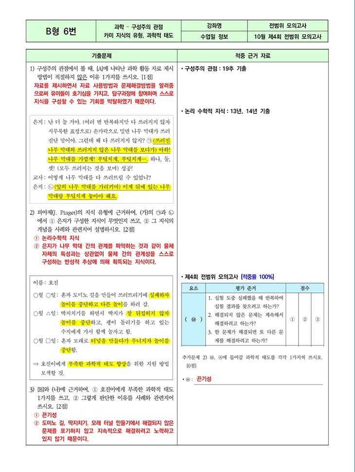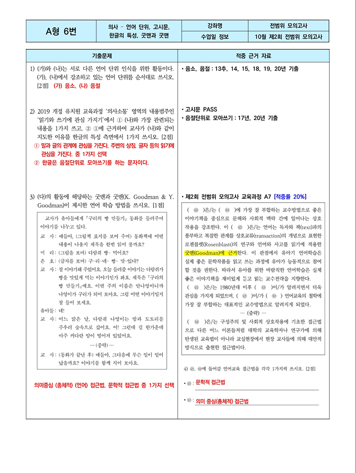 ½ÇÁ¦ ½ÃÇè¹®Á¦¿Í ¶È°°ÀÌ °íµçÀÇ ¿¹ºñ¿Àµð¿¡À̼ÇÀÇ ´Ü°è¸¦ ¹¯´Â ¹®Á¦¸¦ ÃâÁ¦Çϼ̽À´Ï´Ù. ¶ÇÇÑ, ½ÃÇè º¸±â ÀÏÁÖÀÏ Àü °ÀÇ Áß ¿¹ºñ¿Àµð¿¡¼ÇÀÇ ´Ü°è¸¦ ¹¯´Â °ÍÀº ÅëÇÕÀûÀÎ ³»¿ë(¹®ÈÀÌÀÔ, ¸ð¹æ, µ¿È) Áß¿¡ °í¸£´Â °ÍÀÌ ¾Æ´Ï¶ó ¾ÏÈ£ÇØµ¶, ÇùÀÀ µî ¼¼ºÎÀûÀÎ ´Ü°è¸¦ Àû´Â °ÍÀÓÀ» ´Ù½Ã ÇÑ ¹ø ¤¾îÁּ̽À´Ï´Ù.