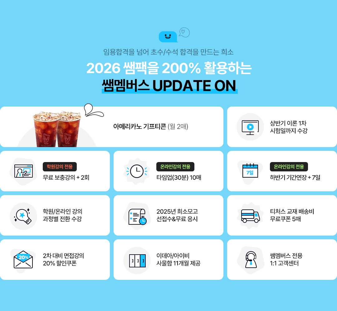 - 2026 ÀÓ¿ë 2Â÷ ½ÃÇè ´ëºñ ¾çÀç¿õ ¼±»ý´Ô °ÀÇ 20% ÇÒÀÎÄíÆùÀ» Á¦°øÇÕ´Ï´Ù. - 2Â÷ °ÀÇ Á¢¼ö Àü, Àϰý Áö±ÞµË´Ï´Ù. |