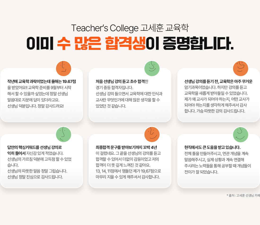 °í¼¼ÈÆ ±³¼ö´ÔÀÇ °ÀǸ¦ µåµð¾î ¿Ï° Çß½À´Ï´Ù. Á¤¸» ÈÄȸ¾ø´Â ¼±ÅÃÀ¸·Î ±³À°ÇÐÀ» °ÅÀÇ ¸ðµÎ Á¤º¹Çß´Ù°í »ý°¢ÇÕ´Ï´Ù. À§Æ®ÀÖ´Â ¼³¸íÀ¸·Î ÀÌÇØ°¡ ½±°ÔµÉ»Ó¸¸ ¾Æ´Ï¶ó, ±¸Ã¼ÀûÀÎ »óȲ°ú ¿¹½Ã¸¦ ÅëÇØ ½ÇÁ¦·Î ±³»ç¸¦ ²Þ²Ù´Â ÇлýµéÀ» À§ÇØ ¸¹Àº ¿¬±¸¸¦ ÇÏ½Ã´Â°É ´À³¥ ¼ö ÀÖ¾ú½À´Ï´Ù. °í¼¼ÈÆ ±³¼ö´Ô ´öºÐ¿¡ ±³»çÀÇ ²Þ¿¡ Çѹߦ ´õ ³ª¾Æ°¥ ¼ö ÀÖÀ»°Í °°½À´Ï´Ù.